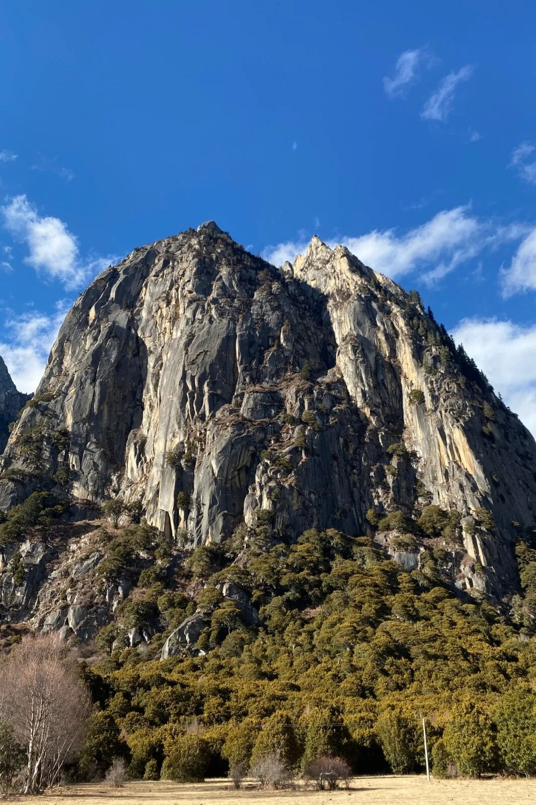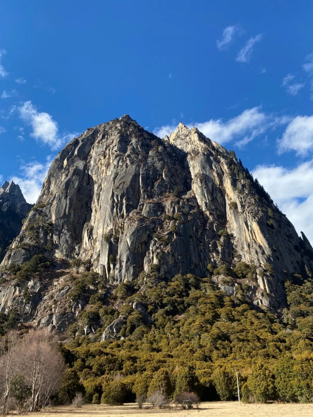 多吉扎森岩又名当立龙多吉札,海拔约3500米,岩体高约800米左右,山端高耸入云,气势磅礴。