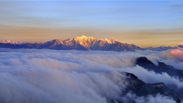 总有人说达瓦更扎的美景是可遇不可求的,但见到了就会沉沦。云海不是一成不变的,日出刚至,天空被渐渐点亮,橘色的光芒从四周照耀而出,雪山的影子从模糊到清晰。随着时间的推移,橘色光芒开始变成明亮的光芒,天空的颜色不再是火染一般,变得蔚蓝,白云也开始出现,一切变得豁然开朗。云海一层一层褪去,万物开始变得清晰明朗,这又是另一种不一样的美。如果你运气极佳,你还会看到彩虹。