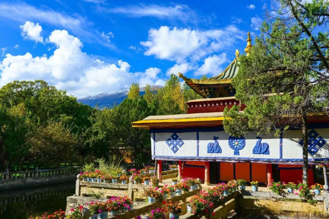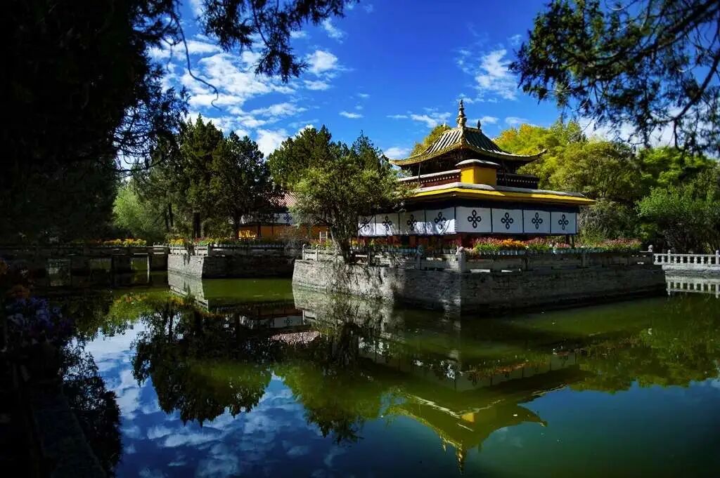 其建筑以格桑颇章、金色颇章、达登明久颇章为主体,有房374 间,是西藏人造园林中规模最大、风景最佳的、古迹最多的园林。