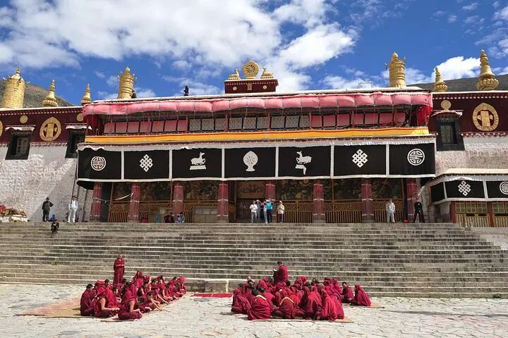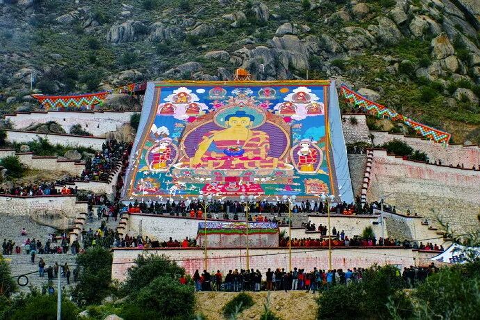每日有规模宏大的辩经仪式,雪顿节时会举行藏区最大规模晒佛仪式。