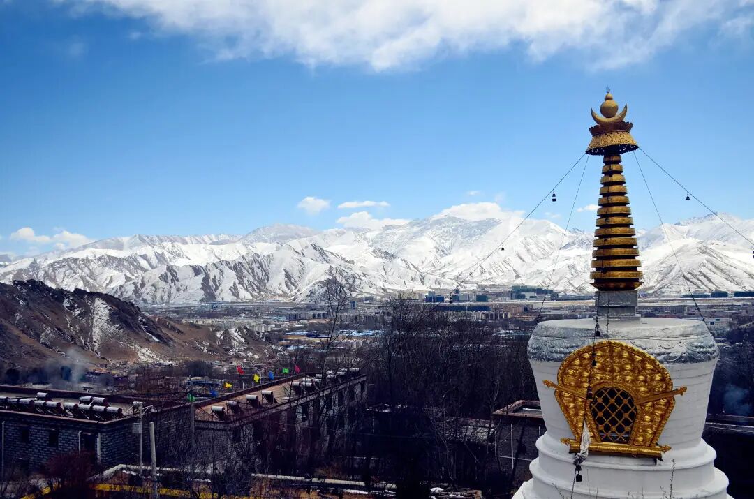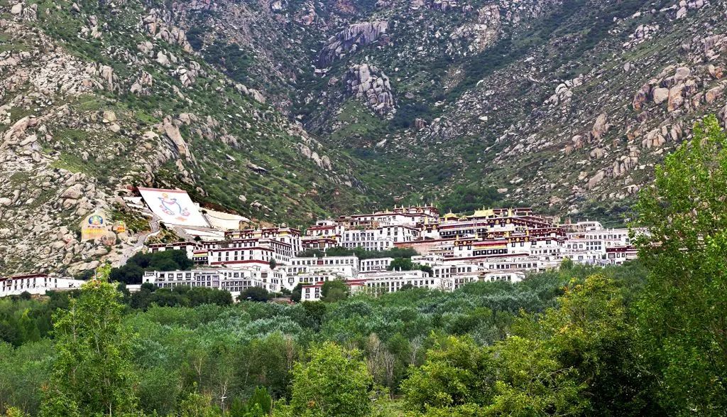 藏传佛教格鲁派最大、地位最高的寺庙,也是全世界最大庙宇。鼎盛时期有1万多僧人,拥有141个庄园和540多个牧场,是藏传佛教最大的寺庙。