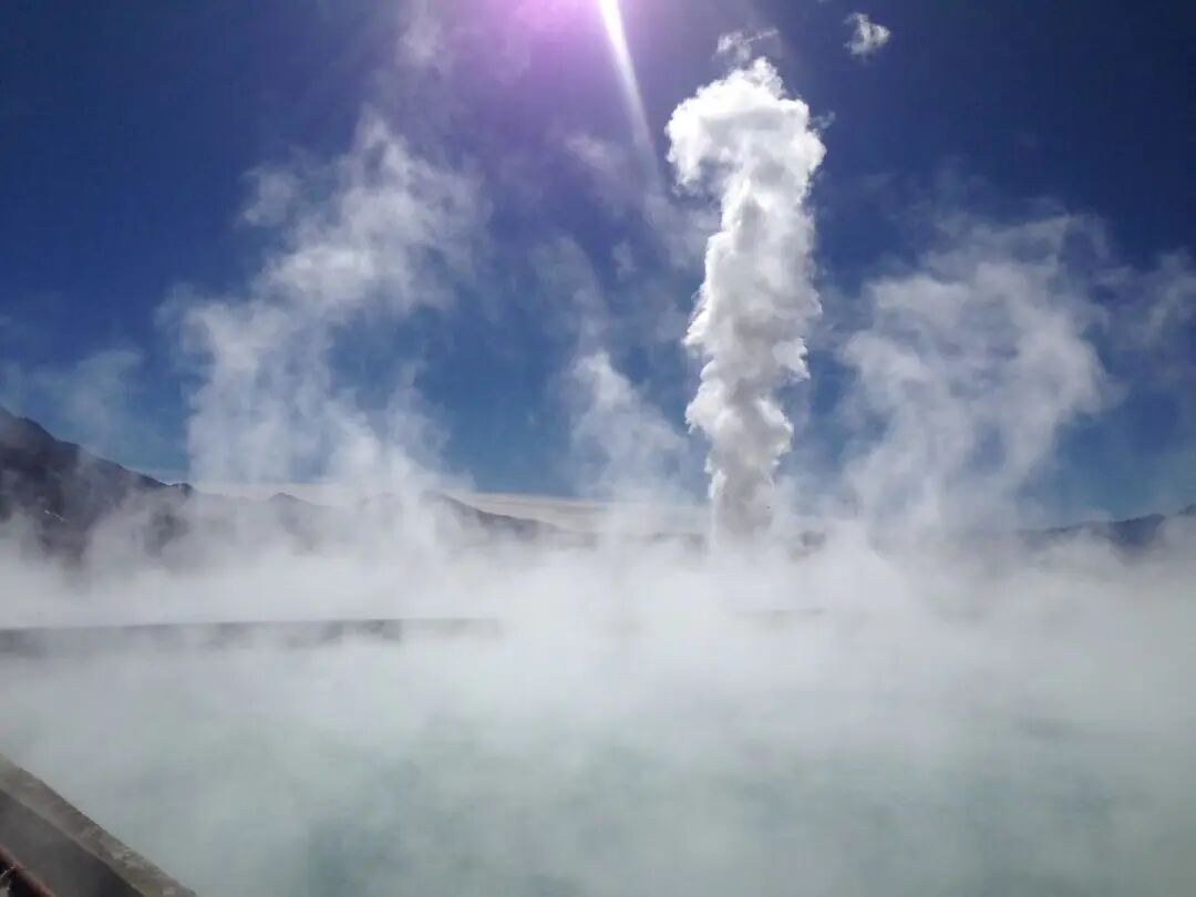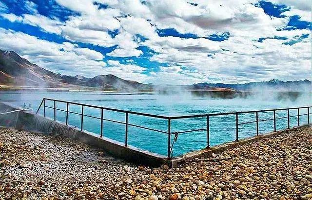 在它的周围远远地可以看见雪山,在这样的环境下泡温泉,确实是一种享受。如果运气好,碰上热水井喷发,更可一睹沸腾的泉水由泉眼直冲而上的场面,十分壮丽美观。