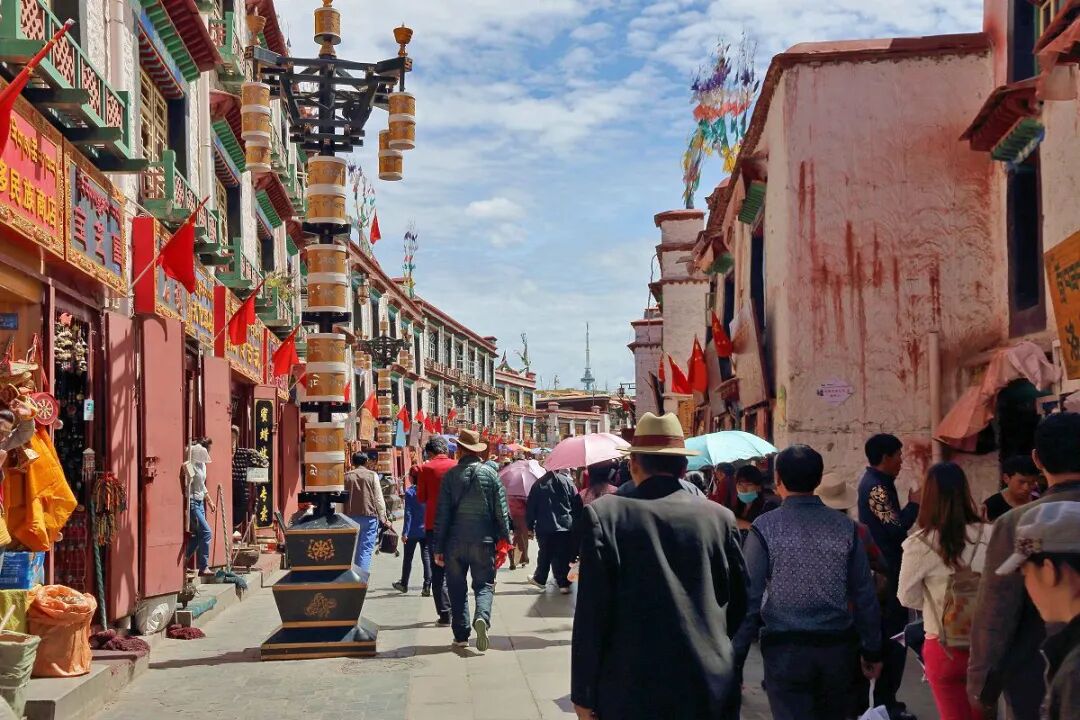 是拉萨最著名的转经道和商业中心,也是拉萨每天客流量最大的地方,这里店铺林立,流动的货摊超过千家。