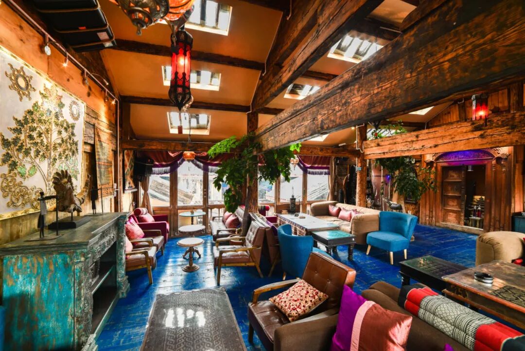 餐厅有着浓郁的西藏风情,茶几上有很多留言本,写满世界各地旅游者的感受,有些游客甚至在留言薄用完后,将向情人的告白写在餐巾纸上夹于其中,餐厅还曾将留言结集出版。