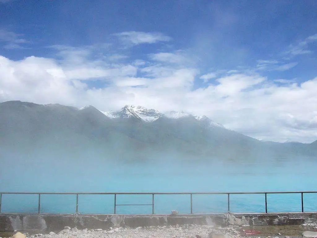 羊八井最美的时候是每天的清晨,由于空气还比较冷,羊八井地热田一带总弥漫着白色雾气,地热田产生的巨大蒸汽团从湖冒起,如人间仙境。