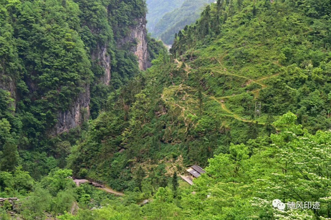 上面观景台可以隐约看到峡谷下游外的房屋。
