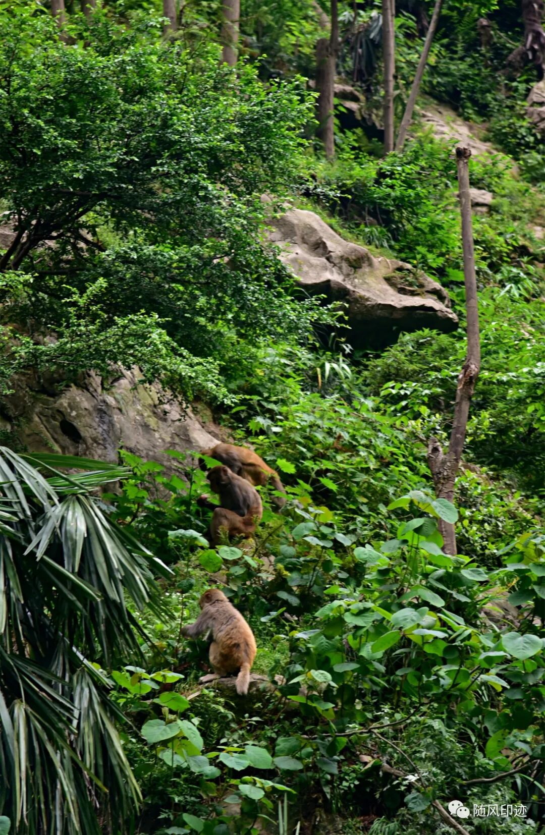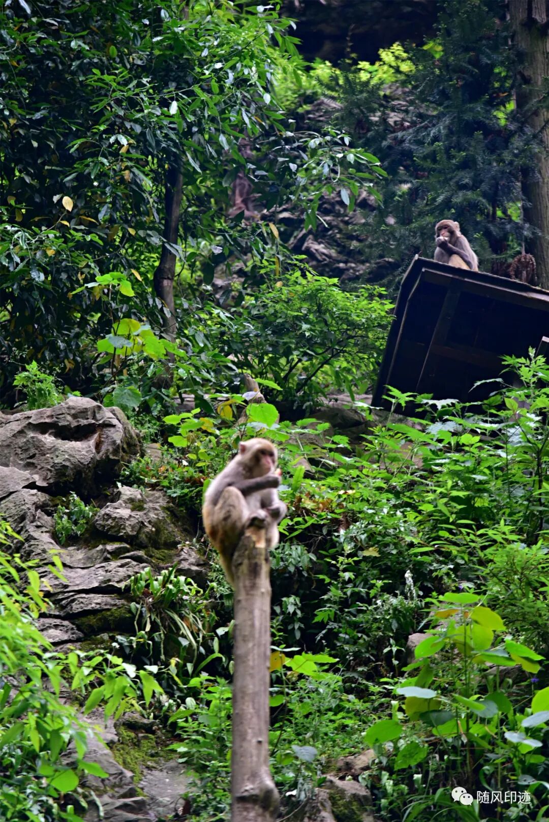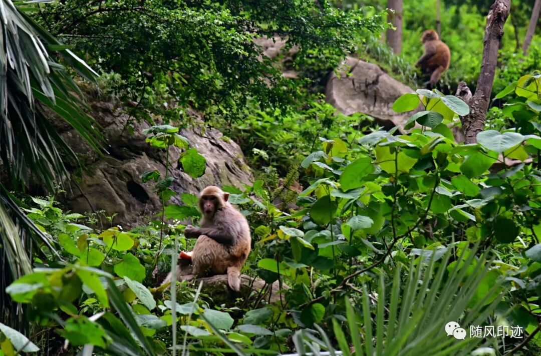 我们到谷底时,饲养员刚刚喂食完,群猴基本跑去休息了,只看见少量几只,还有点怕人,有点遗憾。不过那年在贵州黔灵山被猴群大军搞怕了,现在看见猴群都胆战心惊。