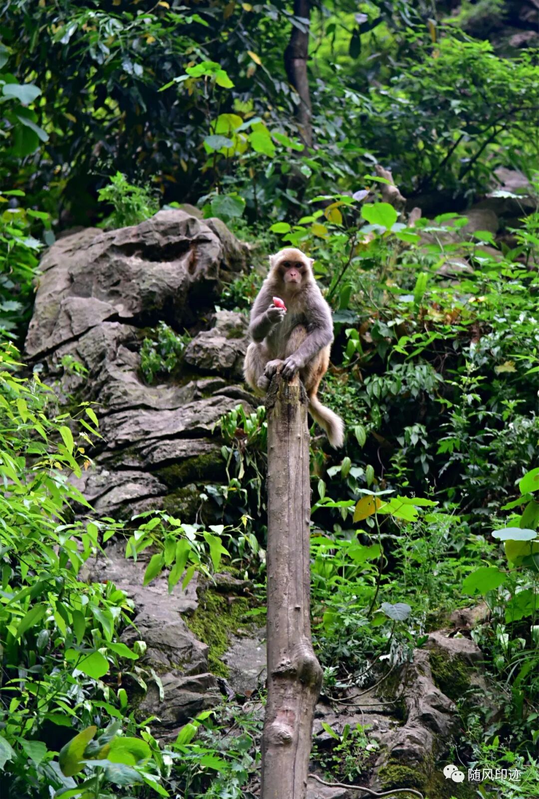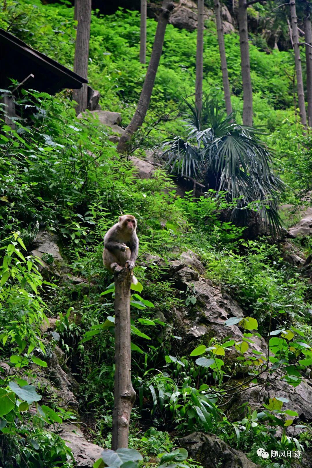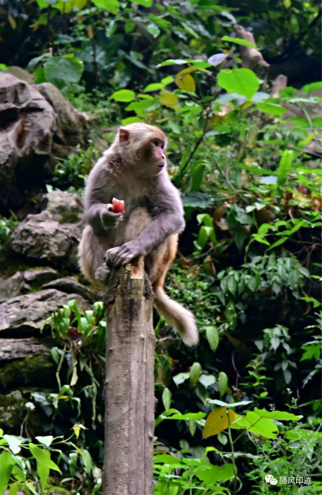 我们到谷底时,饲养员刚刚喂食完,群猴基本跑去休息了,只看见少量几只,还有点怕人,有点遗憾。不过那年在贵州黔灵山被猴群大军搞怕了,现在看见猴群都胆战心惊。