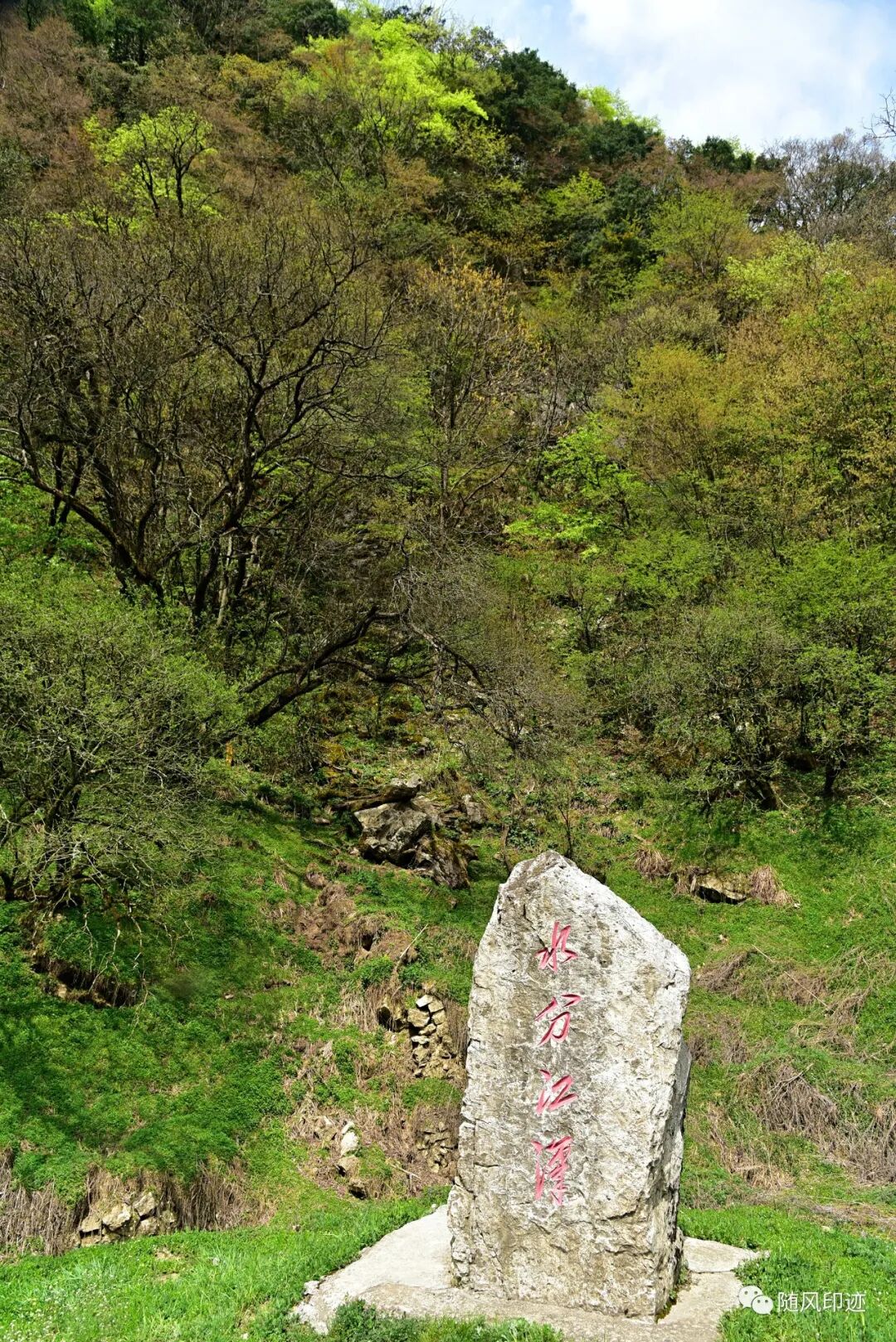 大九湖深处的水分江汉石碑,这片区域很多落水孔,湖水流到这就流入地下了,这也是喀斯特地貌特点。