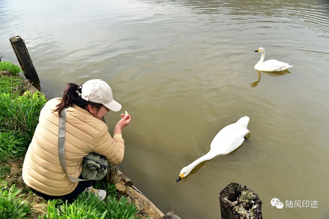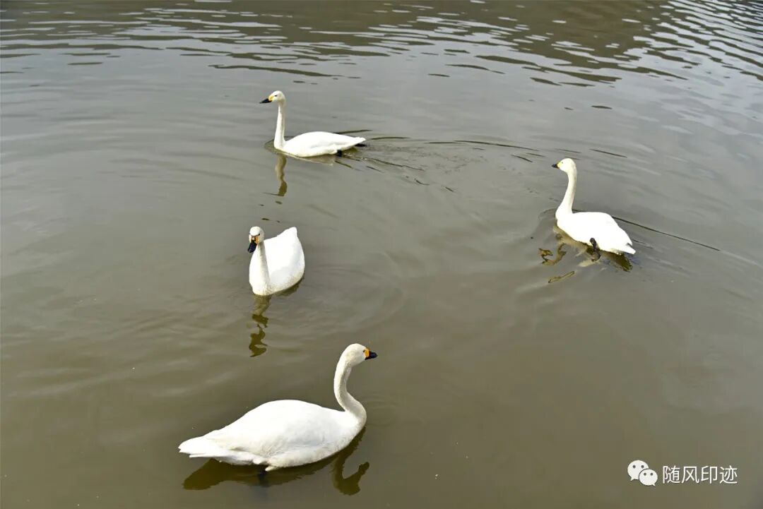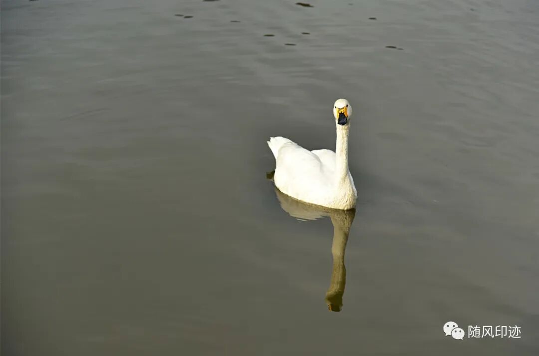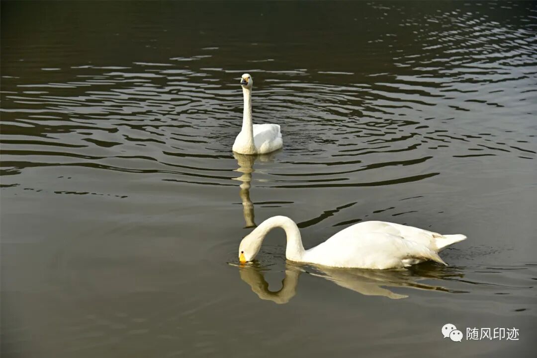 二号湖被一条堤坝分成两边,里面那一部分养了天鹅。