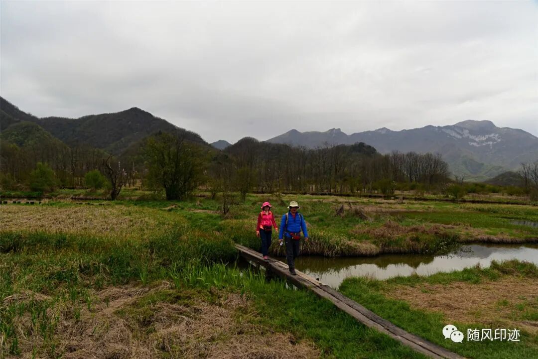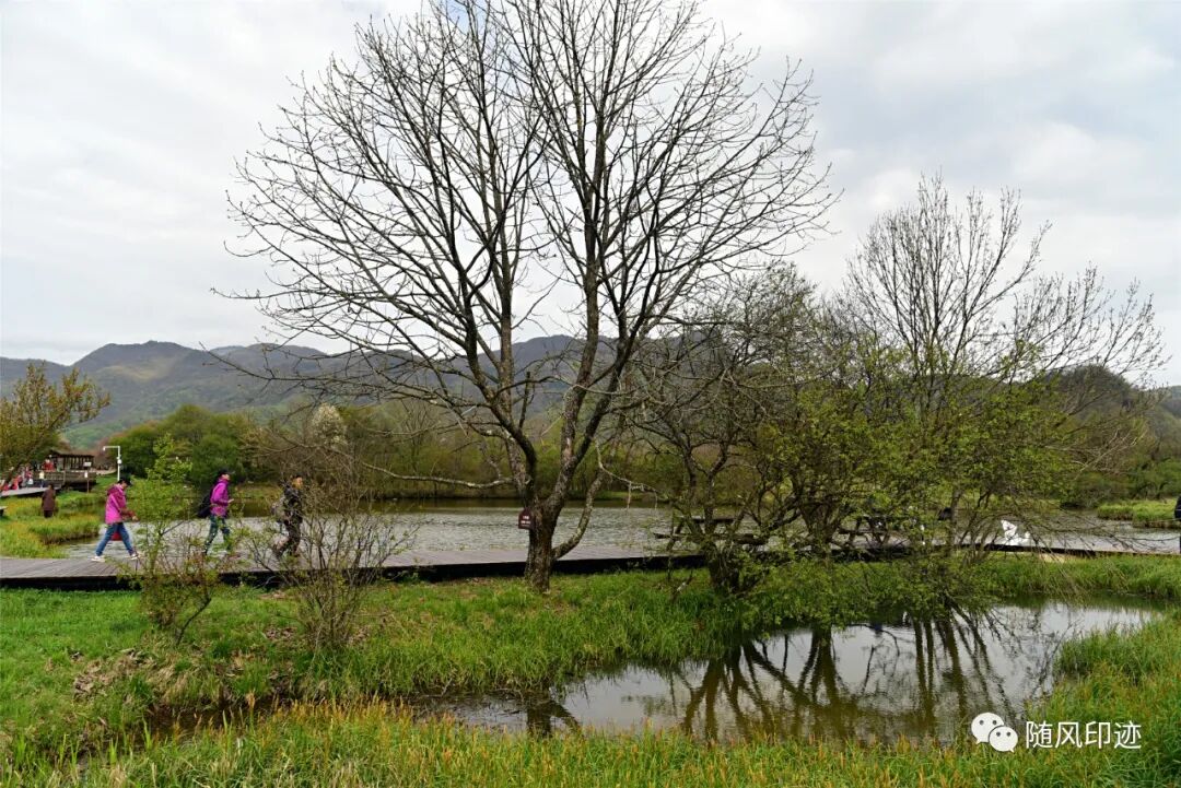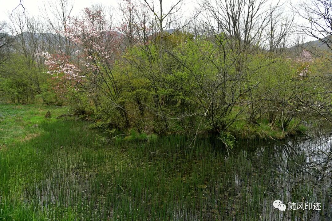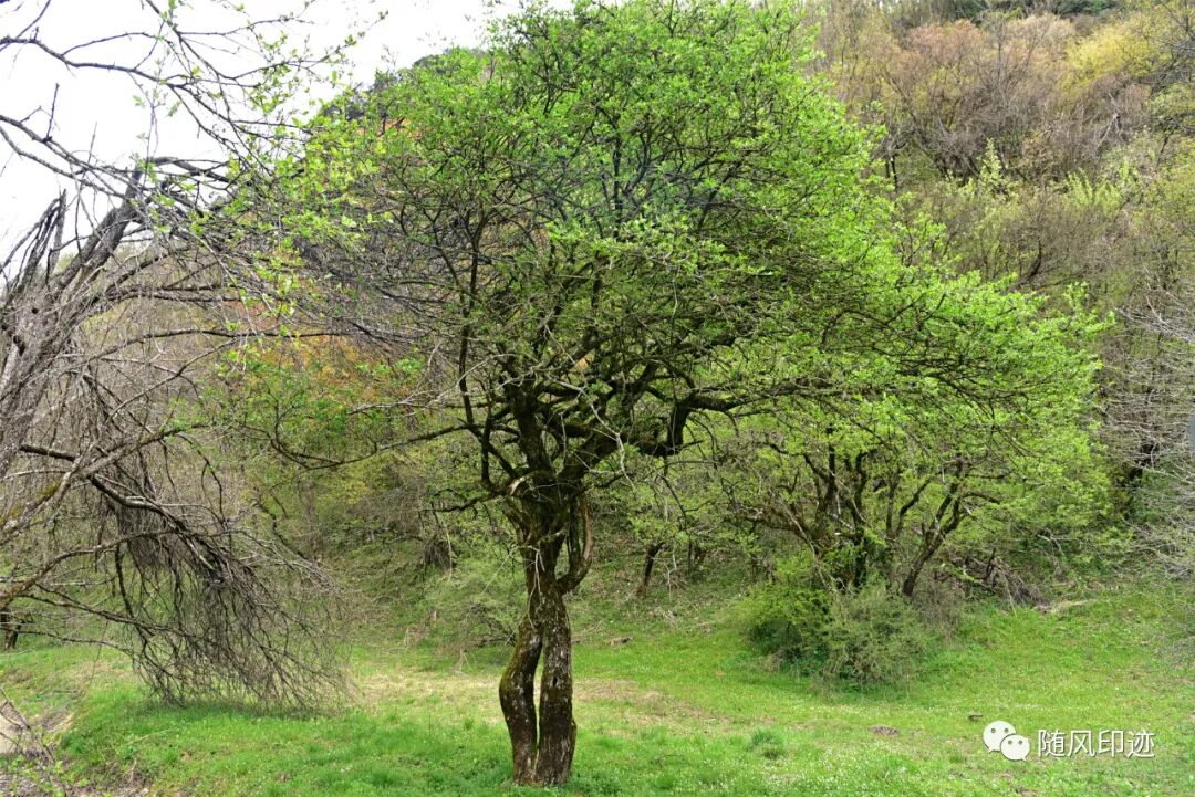 湿地边缘靠山处有不少数百年树龄的湖北海棠。