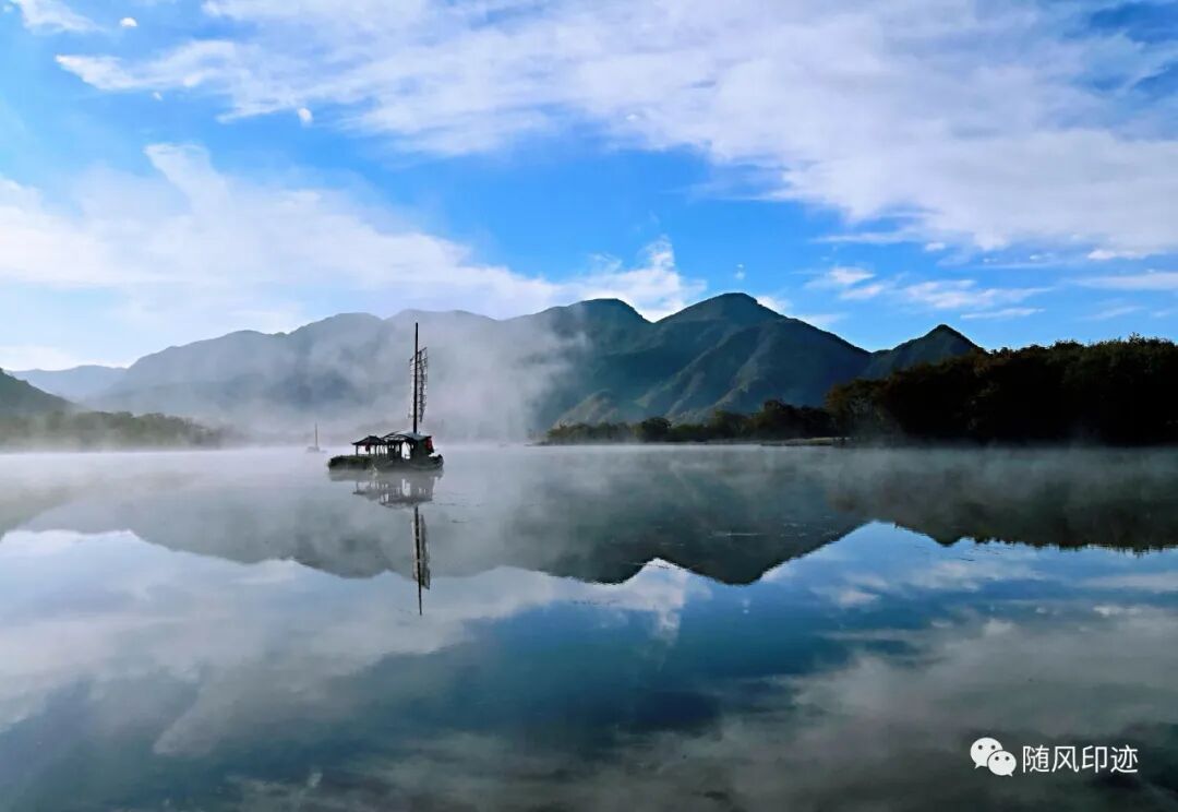 湖光山色入明镜,一帆晨雾掩碧空。