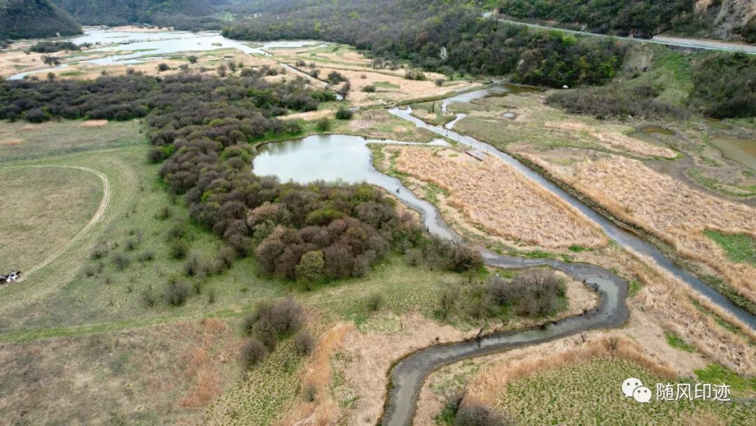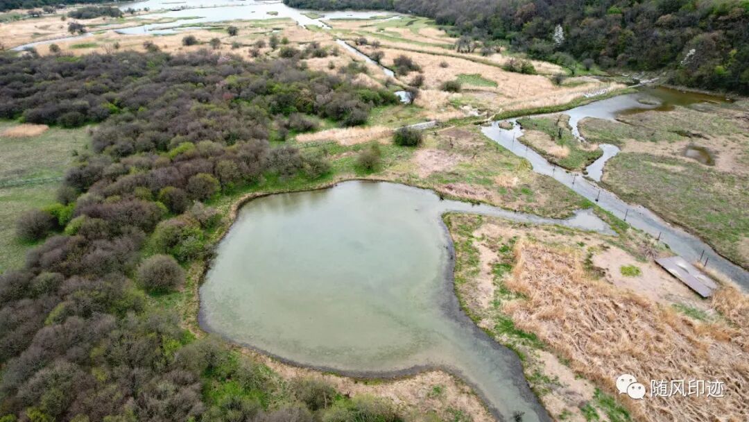 七号湖藏在边缘处,湿地已是一片跑马场,穿过马场可以去到。我就没过去了,回到九号湖小火车站点后冒着七八级大风炸机的危险航拍了一下。