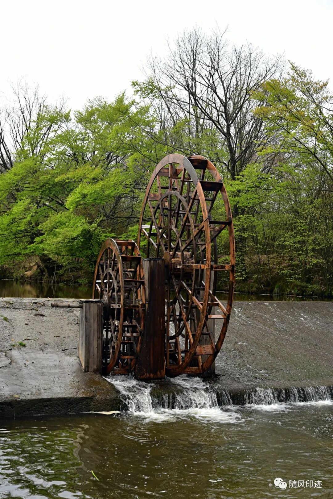 五号湖水流往六号湖的堤坝上的水车,吱呀转个不停。