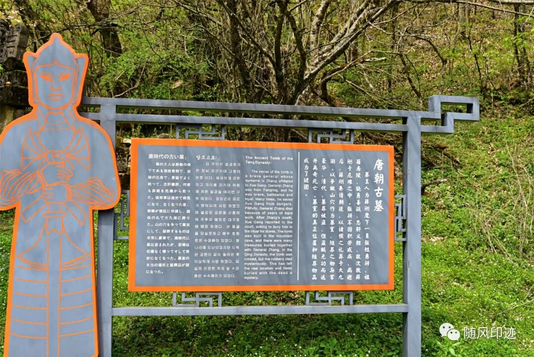 唐朝古墓,据说是薛刚麾下的一名张姓勇将的墓。据说唐中宗李显被母后武则天贬为房州卢陵王后,他做梦都想重登帝位。李显一日在梦中得神农老祖点化,特命薛刚为帅,在大九湖屯兵、练兵,一举推翻武周王朝,恢复了唐号,而李显再次登上中宗皇帝的宝座。大九湖因此承袭下来薛刚反周复唐的古寨以及因此命名的1-9个字号军营及帅字号(亦称“挂字号”)、卸甲套、马鞍山、黑水河、九灯河、碉堡坪等十几个村落,至今还保留着娘娘坟、点将台、小营盘、擂鼓台、鸾英寨、八王寨、古盐道等历史遗迹。