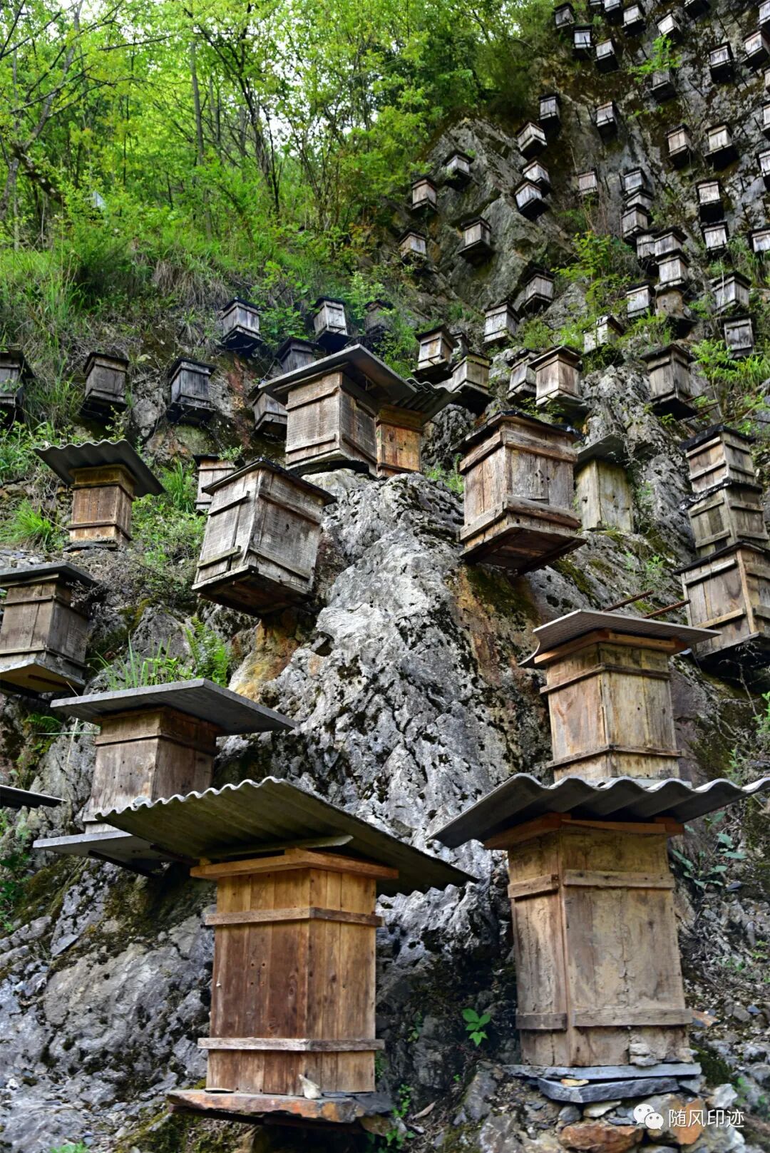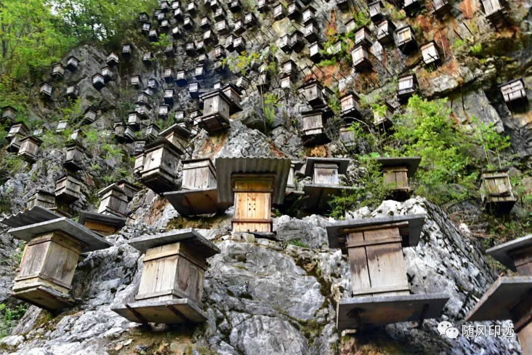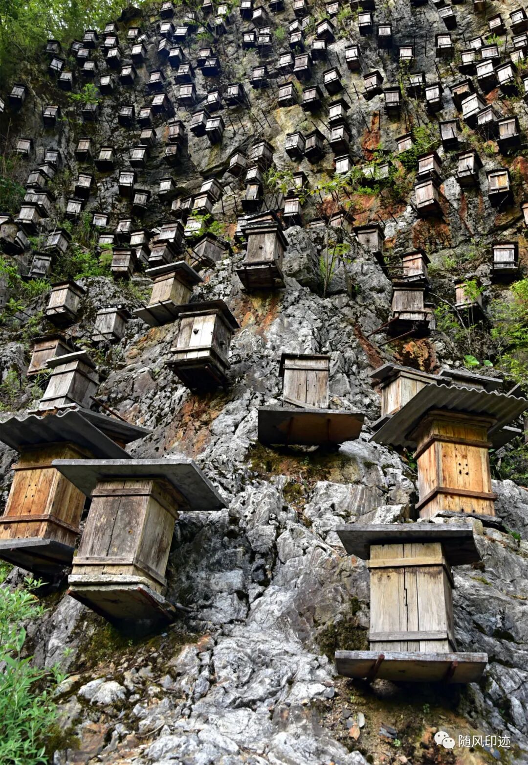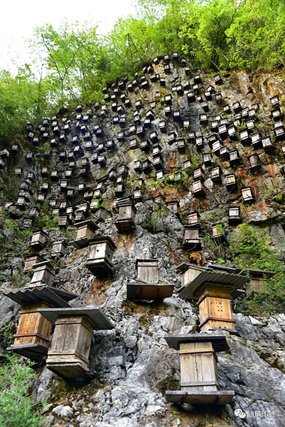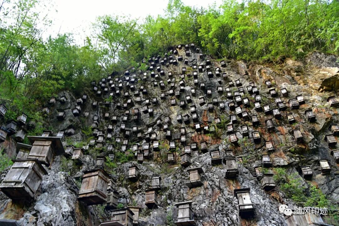 时间关系,我们直接开车一站就干到中蜂观赏区,崖壁上一只一只的小木屋就是蜜蜂的家了,这里的蜜蜂名字叫做“中华蜜蜂”,当地人称为“野蜜蜂”,个头小,花蜜自然比国外引进的、也即各地常见的大蜜蜂产的花蜜要甜很多。