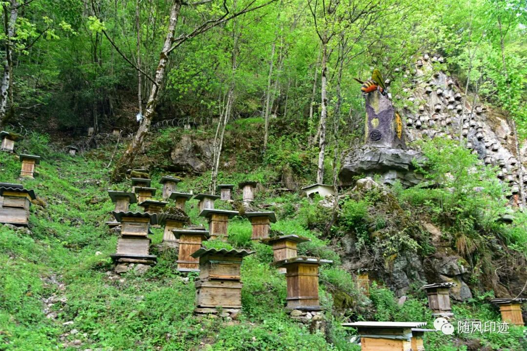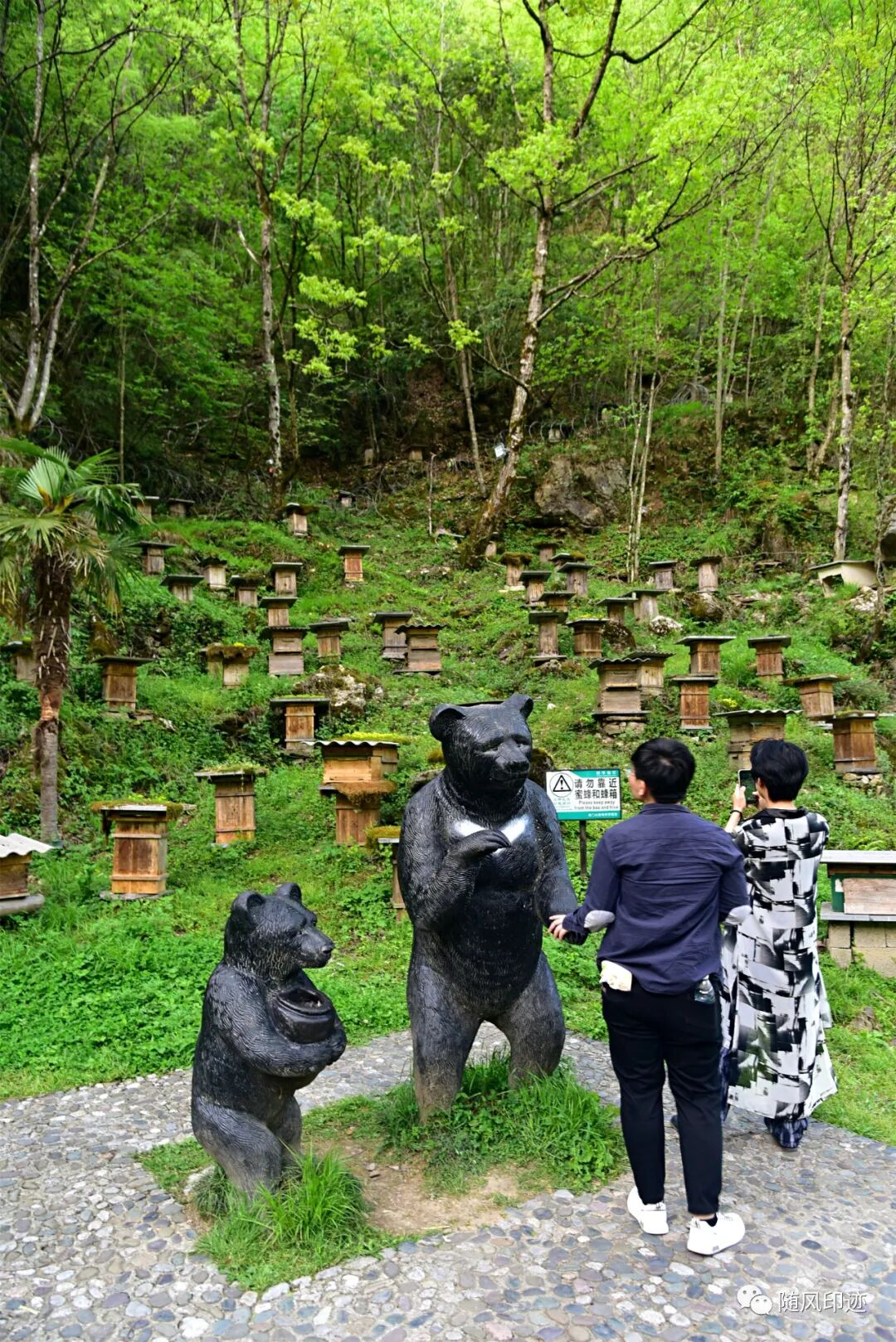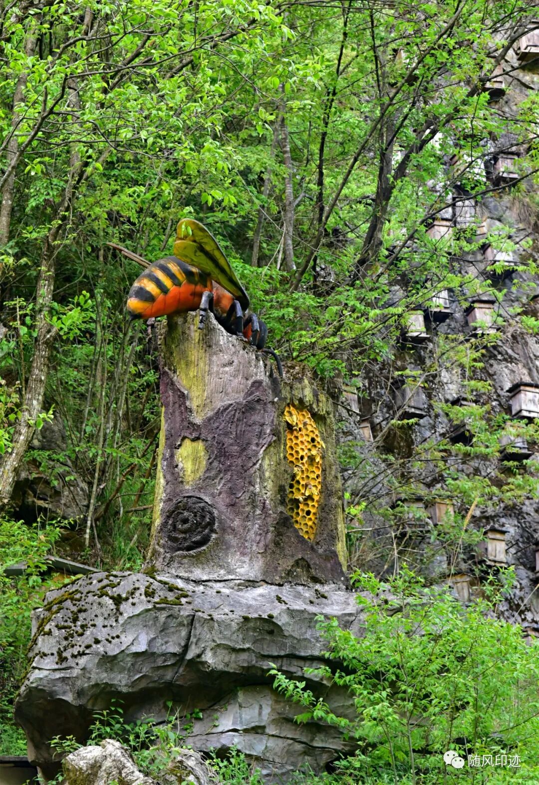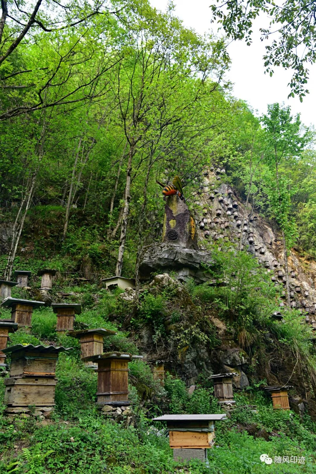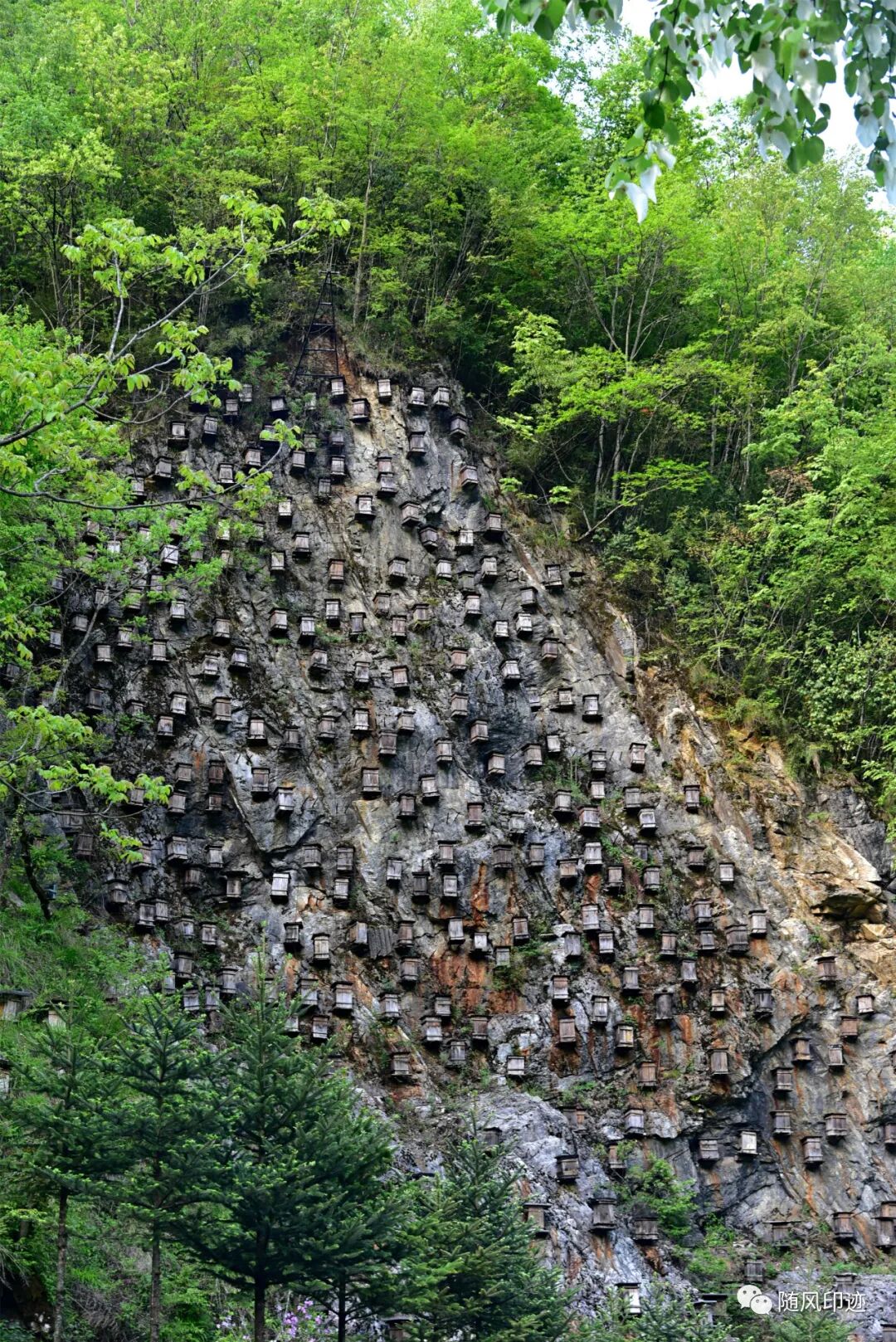 时间关系,我们直接开车一站就干到中蜂观赏区,崖壁上一只一只的小木屋就是蜜蜂的家了,这里的蜜蜂名字叫做“中华蜜蜂”,当地人称为“野蜜蜂”,个头小,花蜜自然比国外引进的、也即各地常见的大蜜蜂产的花蜜要甜很多。