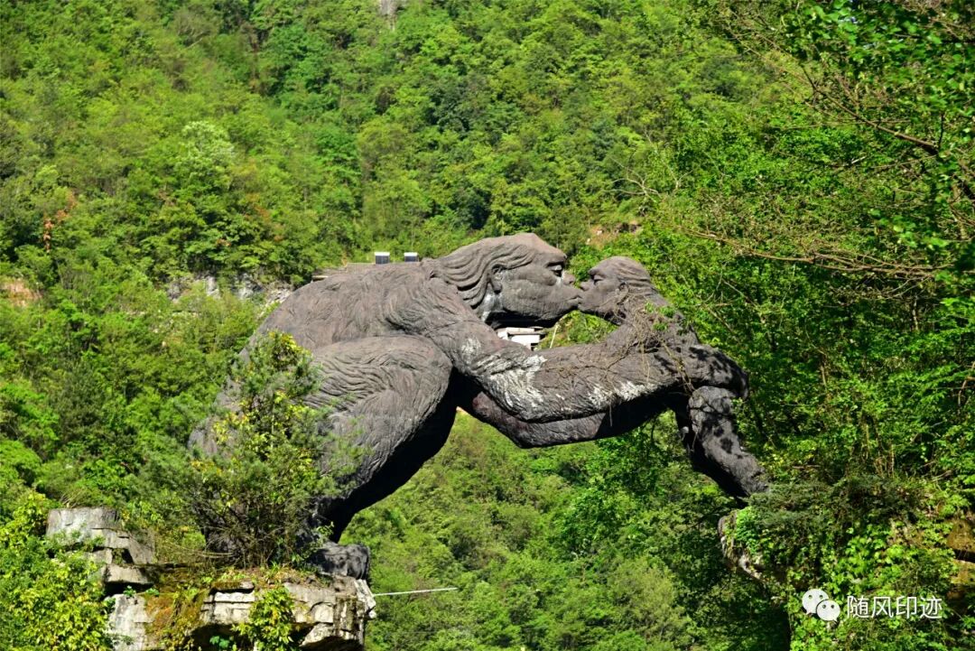 入口野人大门雕塑《母爱》有点意思,以一对野人母子相拥亲吻为主题表现大爱无疆,体现人与野人和谐共处,整个主题雕塑与背后幽深的山谷融为一体。