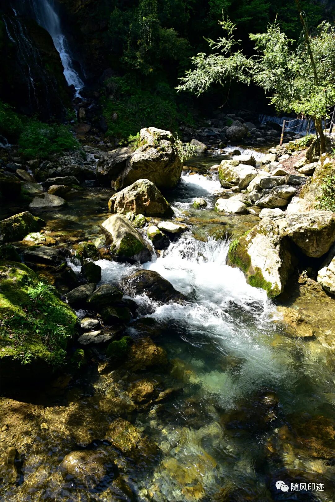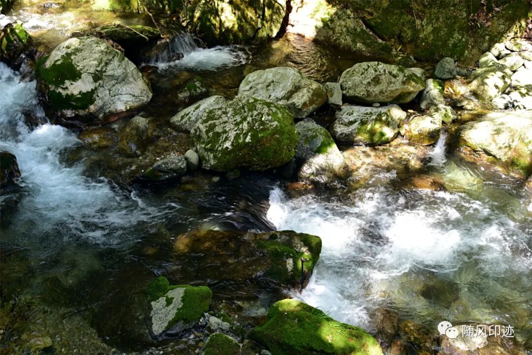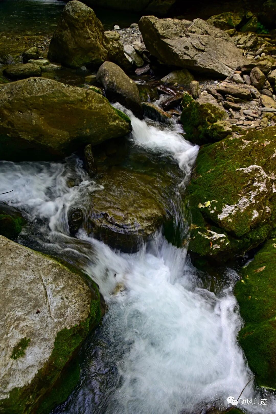循溪而上,一路上流九曲回转,或静若处子,轻言细语;或动若脱兔,跳跃飞泻;或汹涌澎湃,势若蛟龙。