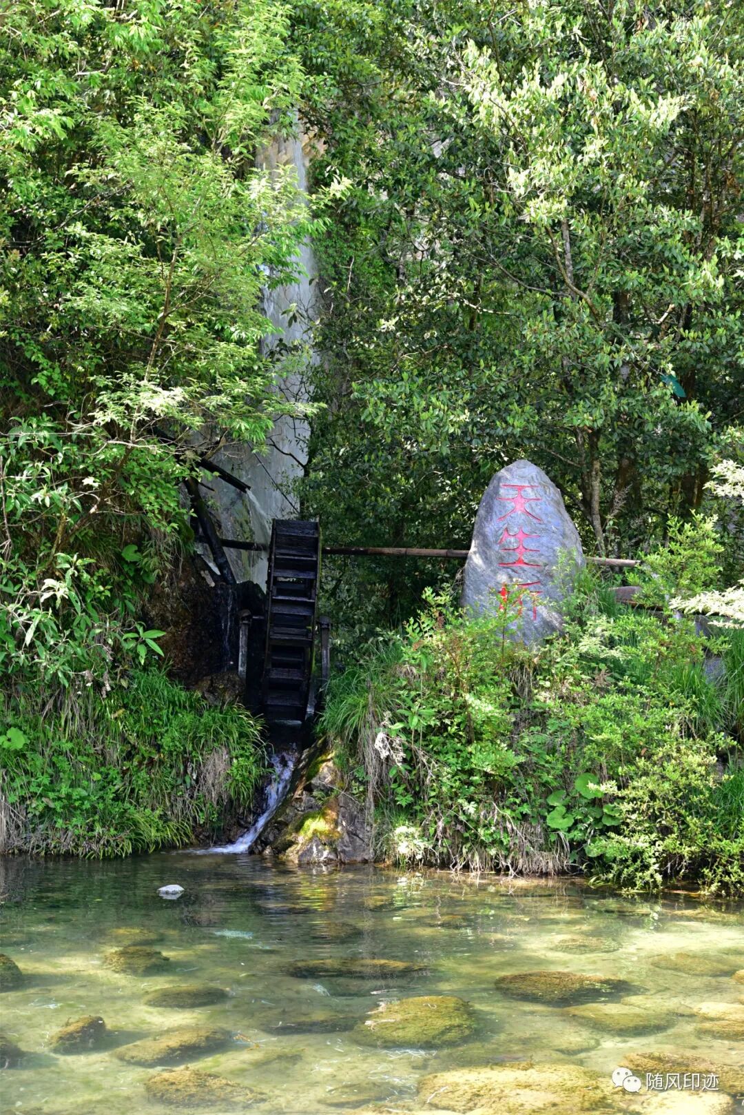 这个就是天生桥景区内一个著名的景点一一心舟石,溪畔这块石头看上去就像是一艘小船和一颗心脏。传说当年溪边的巨石山体即将倒塌之时,是太上老君掰掉自己手上的一片指甲卡在那里,才稳住了山体。因为是太上老君的一番心血,故此命名为心舟石。