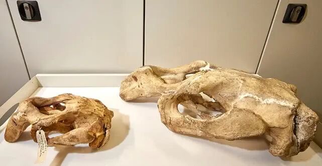 左边现代儒艮的头骨,右边斯特拉大海牛的头骨