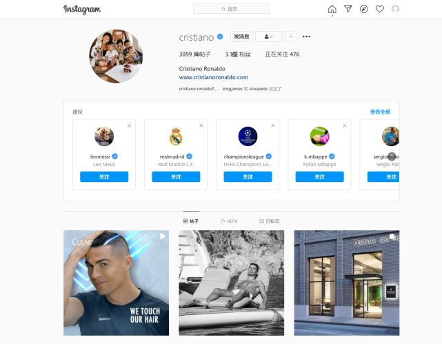图注:C罗的ins主页