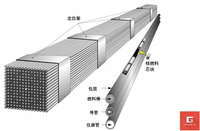 一般情况下,核电站的核燃料是包含由氧化铀(氧化物比金属铀-235更耐高温)制成的小颗粒,然后这些颗粒被堆叠并密封在金属管内。