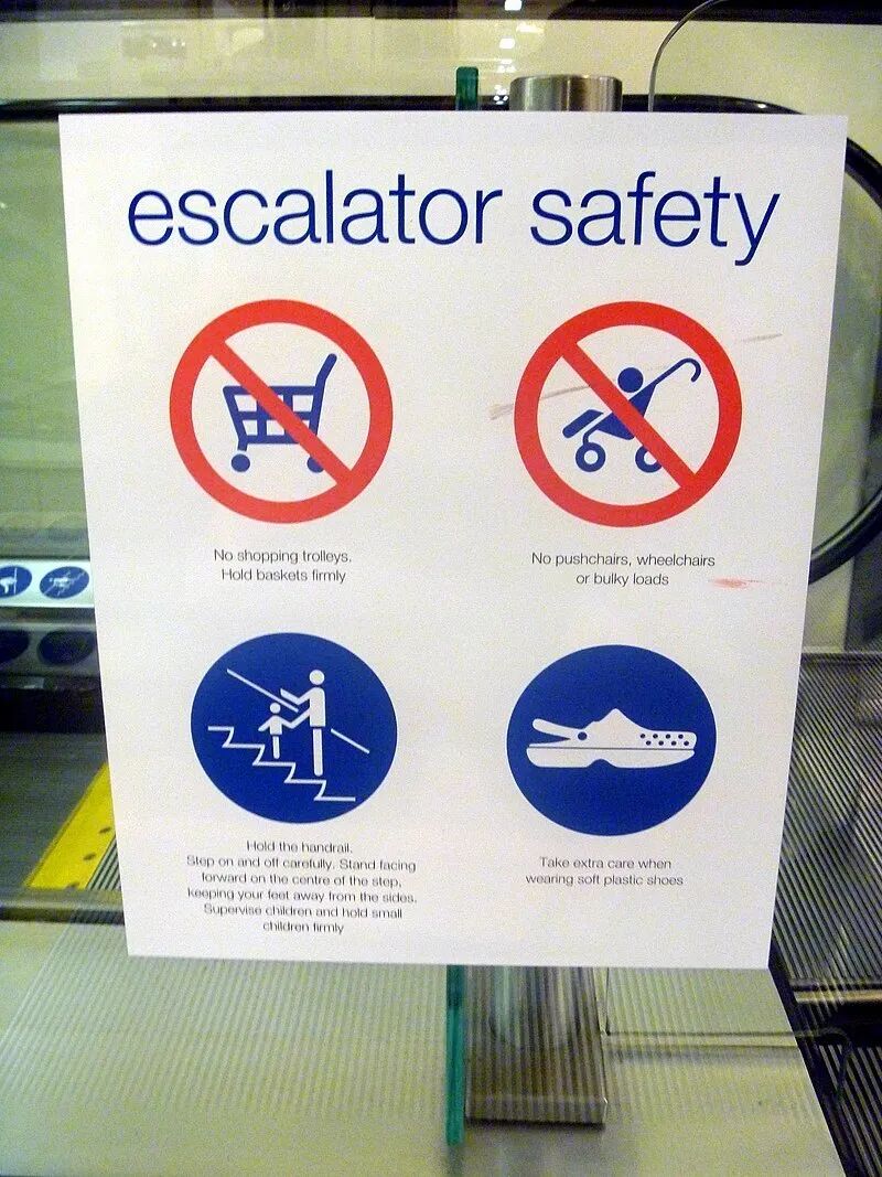 其实,在很多商场都能看到这样的提示:请穿着洞洞鞋的顾客和孩子,勿乘坐自动扶梯!