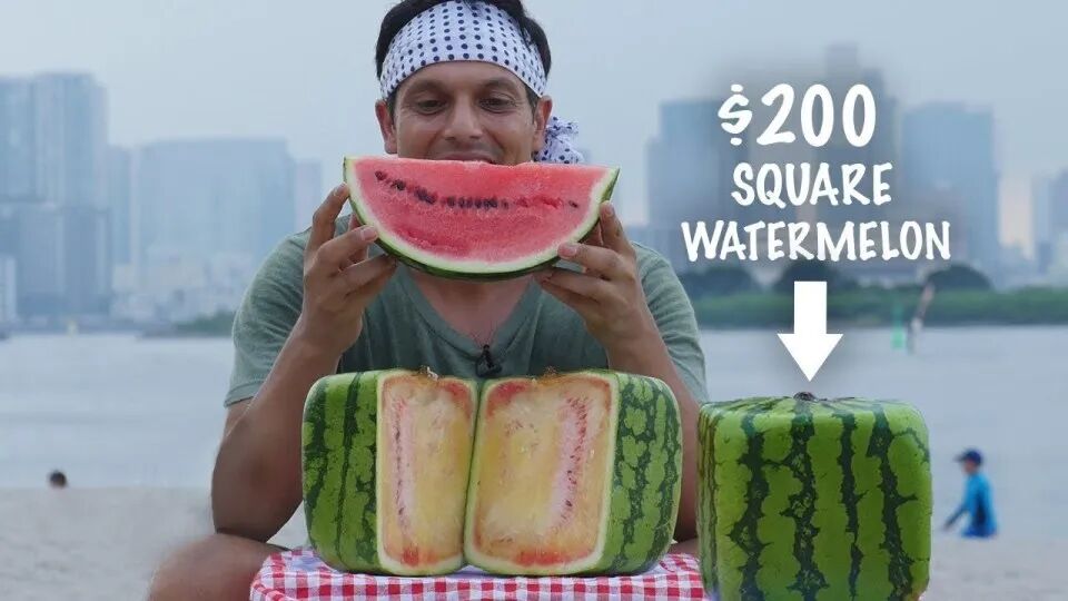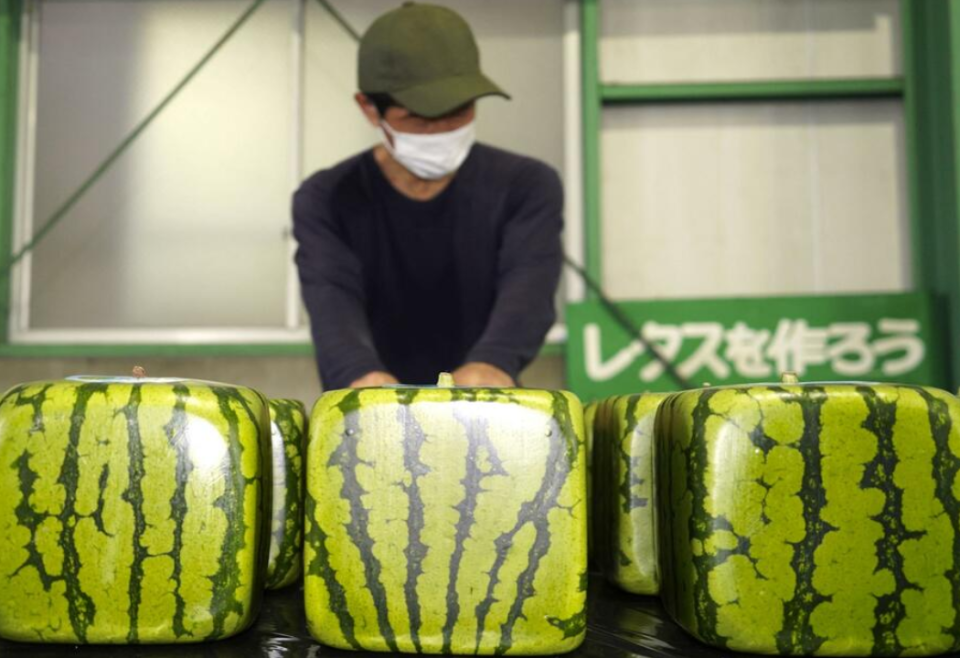 在日本,除了方形西瓜,还有心形和金字塔形的。