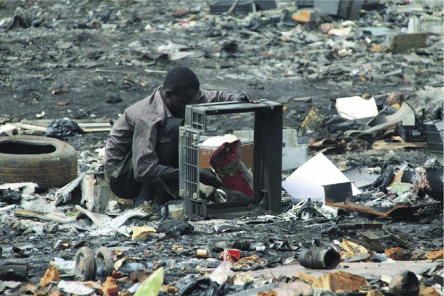 在运送到非洲之前,欧美国家早已做了可回收预处理,简而言之就是把最值钱的配件拿走,剩下的不是塑料废铁就是含有对身体有害物质的电子配件。科学家统计每年有21万吨的电子垃圾在加纳焚烧填埋,但是只有3%的电子垃圾具有回收价值。