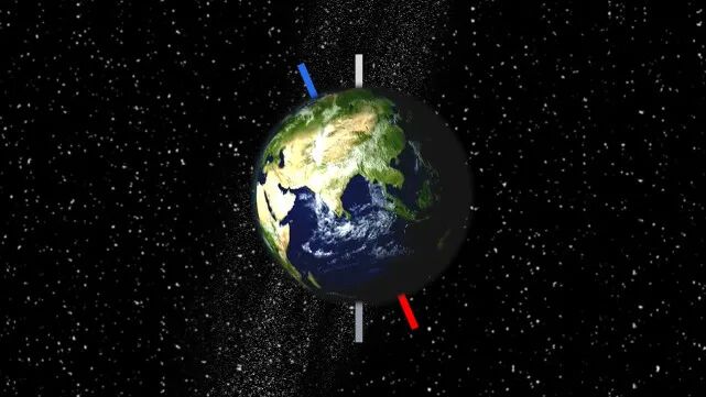 现在,地球的地轴相对于我们绕太阳的轨道倾斜了23.4度。但是在这个旋转周期中有一个轻微的摆动。摆动就像你看到的一个旋转的陀螺,慢慢地使尖端跟踪一个圈,作为玩具旋转迅速。