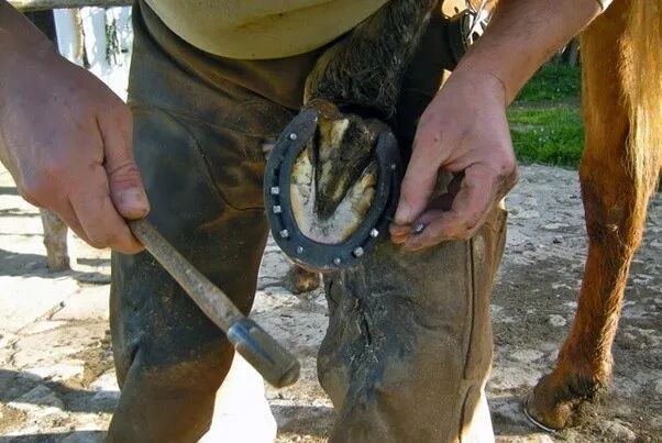 现在,有专门给马上蹄铁的人——蹄铁匠,马蹄铁也可以用许多材料制成,包括钢、铝,甚至是钛。蹄铁匠为每匹马量身定制,尽可能完美地适合每只马蹄。