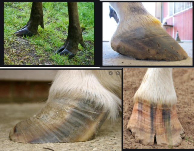 这种蹄形会导致受力不均,马的脚会引起慢性疼痛,并拉伤腿部的肌腱和韧带,长久下去只会让马更快失去工作能力。