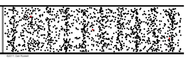 比如当你打响指时,周围的空气分子就会受到干扰。然后它们会撞上邻近的分子,这些分子会把这种波动传递给它们最近的分子。