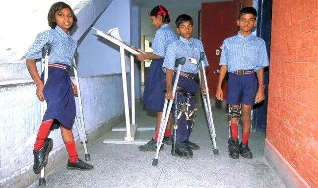图为:在康复中心的小儿麻痹症患者
