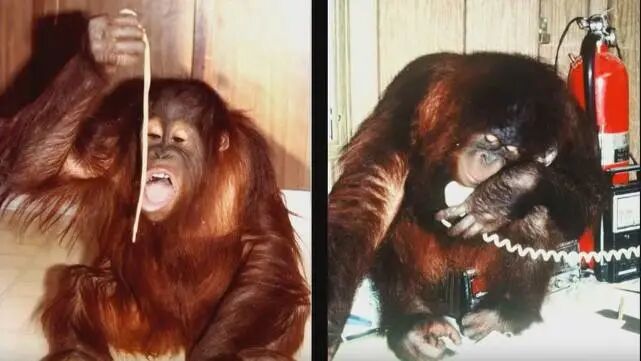 比如1978年,人类学家林·迈尔斯(Lyn Miles)和它的团队就与一只苏门答腊猩猩一起生活了九年,这只猩猩学会了打扫房间,手语,制作和使用工具等等。