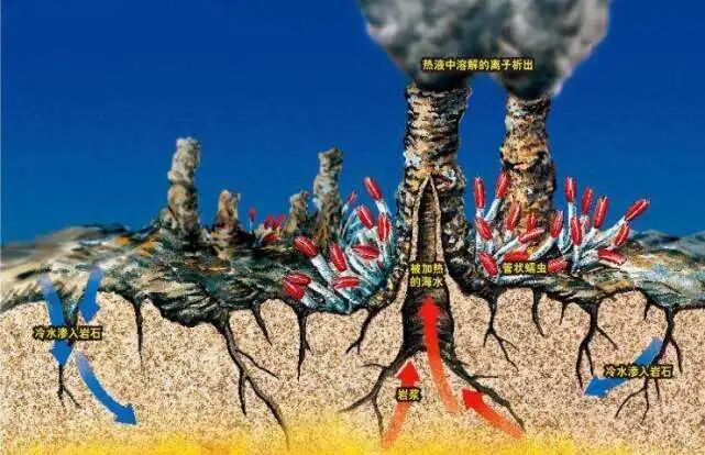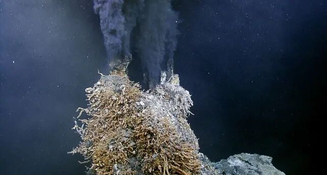 它就像海底的一个烟囱一样大多时候呈现黑色,根据喷发所含矿物质的不同,有时候也会呈现其他颜色,比如黄褐色、蓝绿色等等。