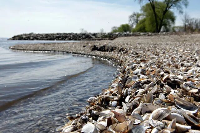 正常情况下,斑马贻贝的寿命是4-5年,当它们死亡时,它们的被冲到了岸边,导致整个污染水域的沿岸都是它们的贝壳。