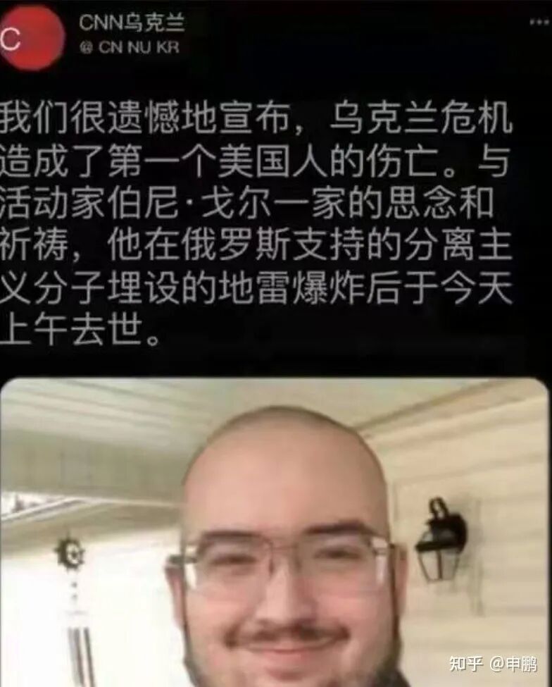 CNN乌克兰还说一位名叫波尼.戈尔的美国人被俄军杀死了,结果有人发现这个波尼.戈尔死了两次,几个月前他就在CNN阿富汗的报道中“死于塔利班的处决”了……我想这位波尼.戈尔的照片还会在别的地区的战争和冲突中出现。