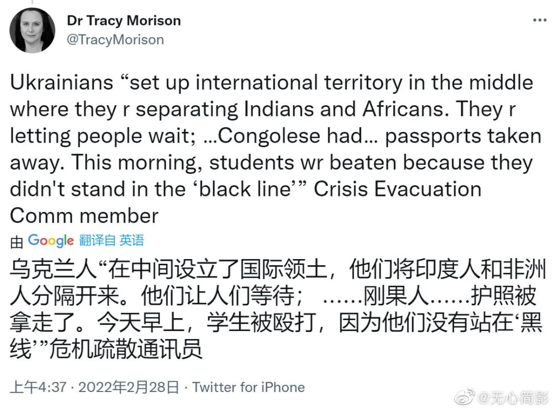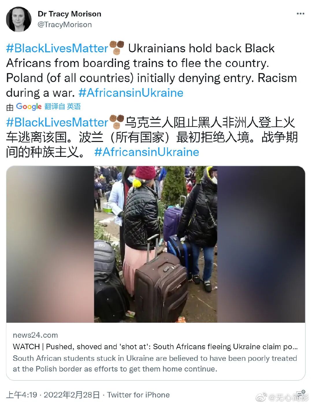 因为乌克兰阻止印度人、黑人离境,明显表现出了“白人至上”和“种族主义”的特征,这触动了西方政治正确的逆鳞,越来越多的人如梦初醒一般,开始指责则连斯基政府、“亚速营”是法西斯纳粹。