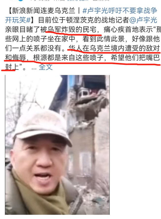 3、大家还记得卢宇光大义凛然呼吁“国内喷子不要拿乌克兰战争开玩笑,乌克兰仇华就是因为国内的喷子......”