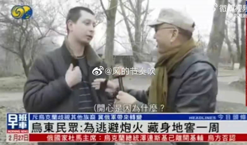 1、卢宇光采访东乌克兰的一位居民,那位居民说俄军来了,我们的生活会越来越好,卢宇光问:“你说的是真心话吗?”东乌居民说当然是真心话,卢宇光反复追问:“真的吗?你真是这么想的吗?”东乌居民说当然就是这么想的,我现在开心的很,他说长期以来乌克兰歧视俄罗斯族,纳粹屠杀我们,现在俄军来了,我们可以过上正常生活了,当然开心了......