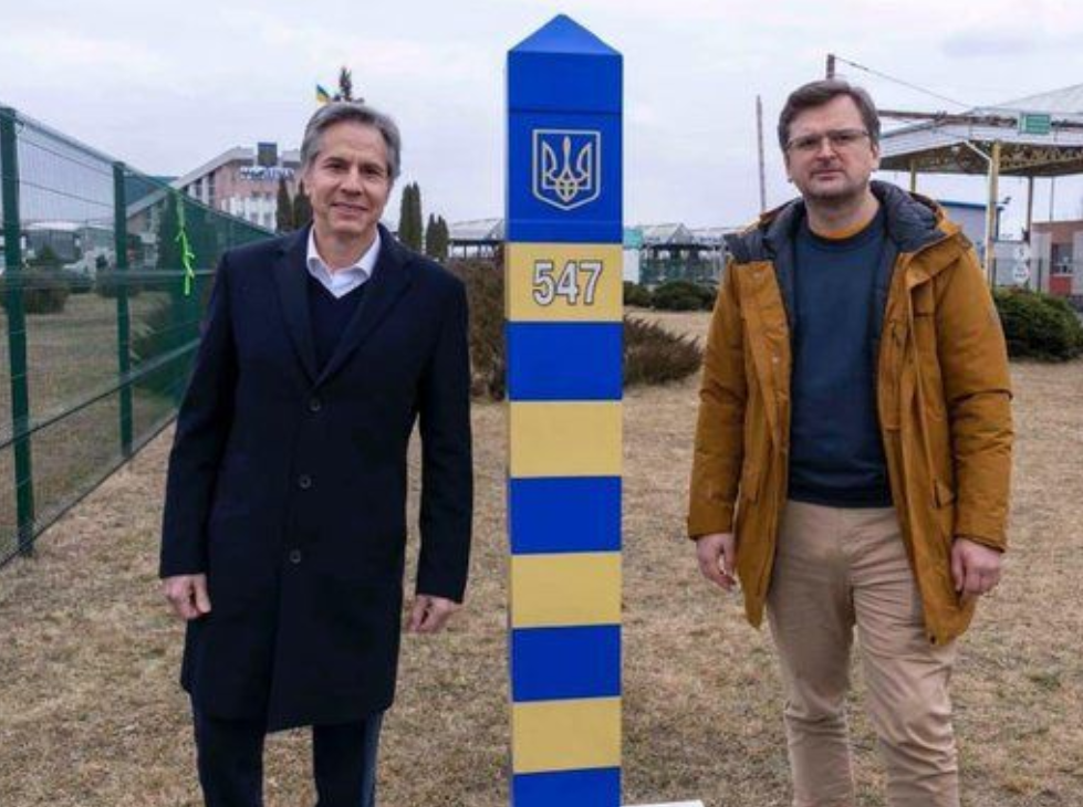 美国国务卿布林肯前几天窜访了乌克兰,当然,他只进入了乌克兰领土4.57米,和乌克兰外长在边境线上“会谈”。