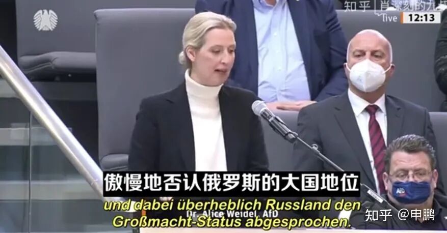 这位“选择党”领袖还讲到,既然我们德国连自己独立自主的国防军都没有,为什么要插手俄乌事务?既然我们德国连自己的能源自主都不能保障,为什么还要去得罪提供天然气和石油的俄罗斯?现在德国最需要做的工作,难道不是重建国防、多搞核电、能源自主吗?