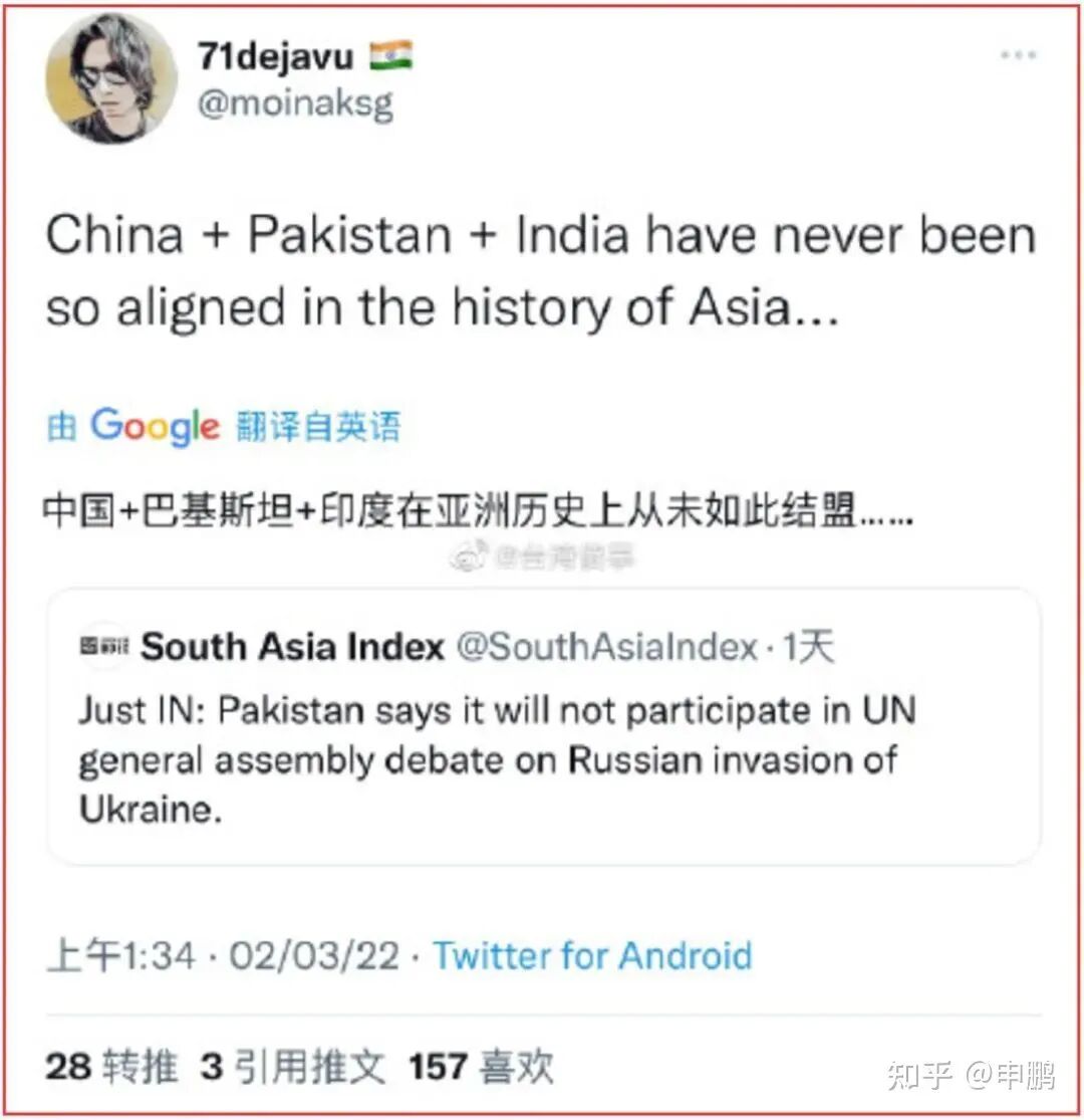 比如印度,在整个西方世界都在亮黄绿灯的时候,他们公然亮红、白、蓝灯。