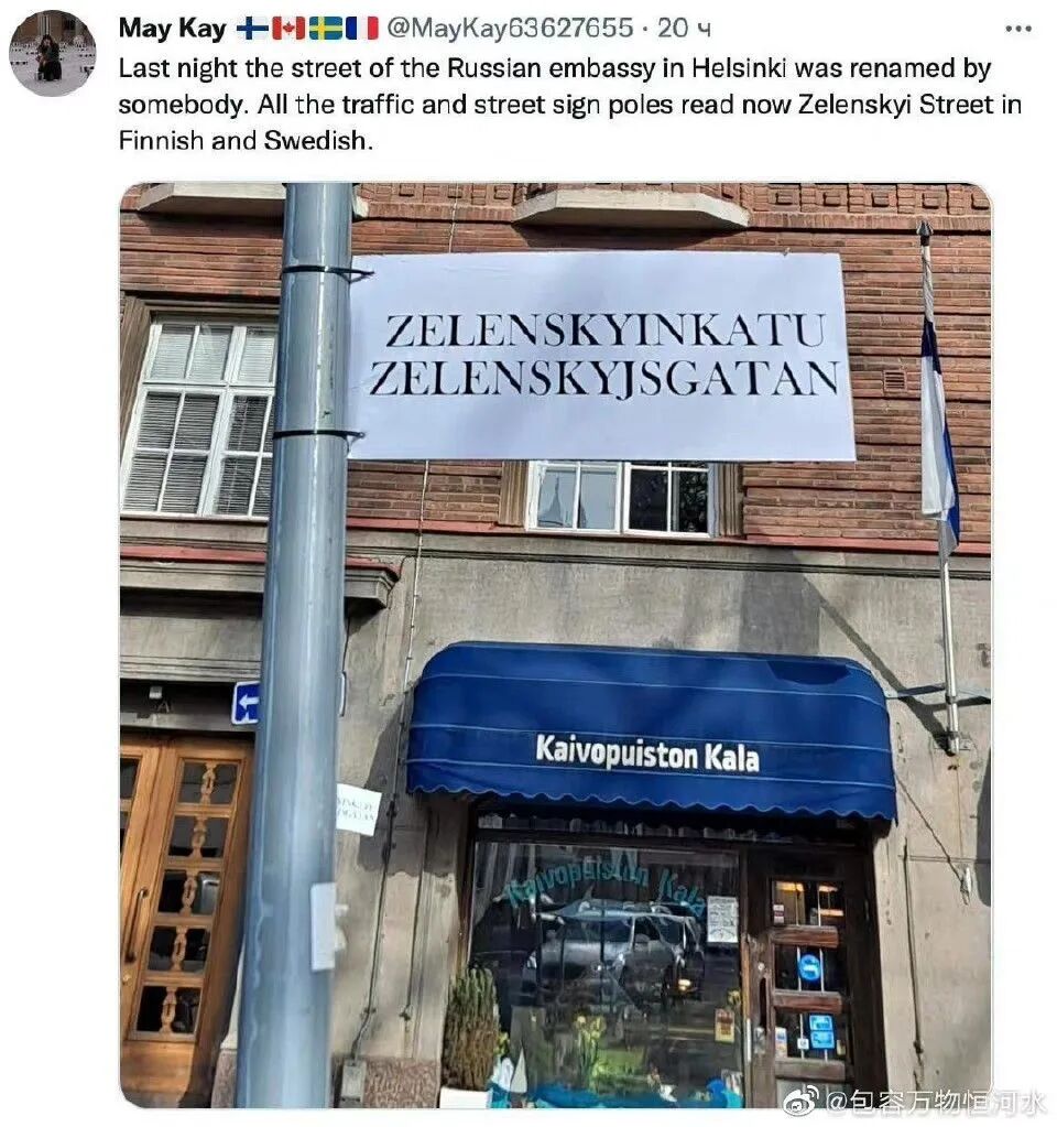 芬兰为了支持泽元首,把一条街的名字改成了“泽连斯基街”。