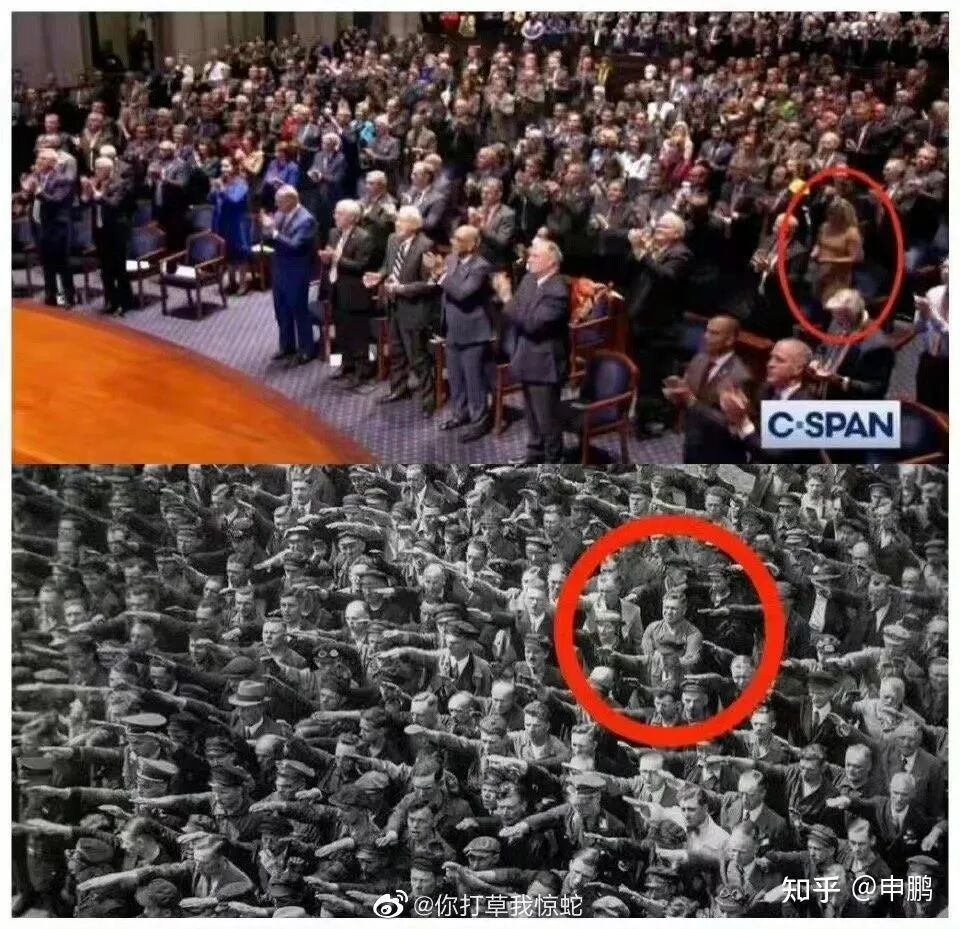 在美国,泽连斯基国会演讲的时候,有一位美国议员玛乔丽·泰勒·格林没有鼓掌,低头玩手机,结果被两院群起而攻之,骂她不尊重“泽圣”,“令人作呕”。