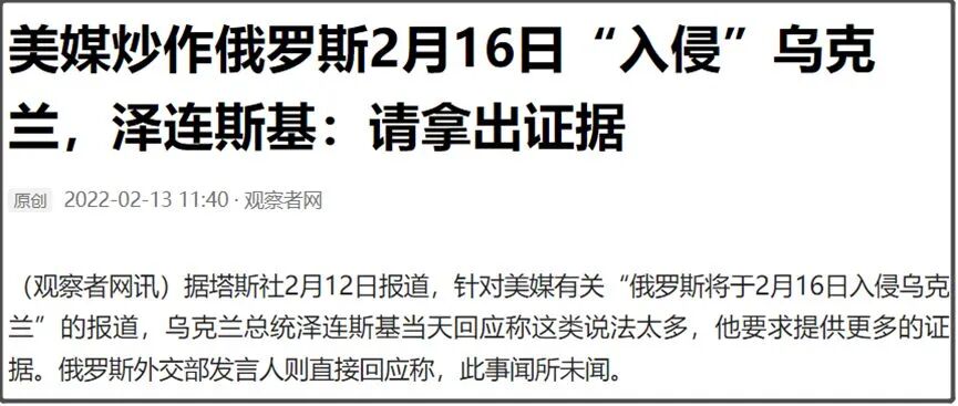整个美国都在炒作“俄罗斯入侵乌克兰”,美国白宫、国防部、总统、国务卿、安全顾问、街头的黑人、推特上的无脑喷子.....都相信“俄罗斯要入侵乌克兰”,拜登还给双方定了日子——2月16日,一定打!