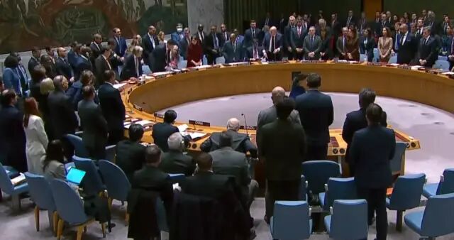 联合国安理会当天举行乌克兰问题公开会,乌外交部长库列巴呼吁在场与会者为自俄罗斯“特别军事行动”开始以来遇难的乌克兰人默哀一分钟......大家没有全站起来。