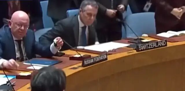 随后俄罗斯驻联合国代表涅边贾敲桌子,请求古特雷斯一起起立为乌东地区遇难的乌克兰人默哀......这回大家都站起来了。